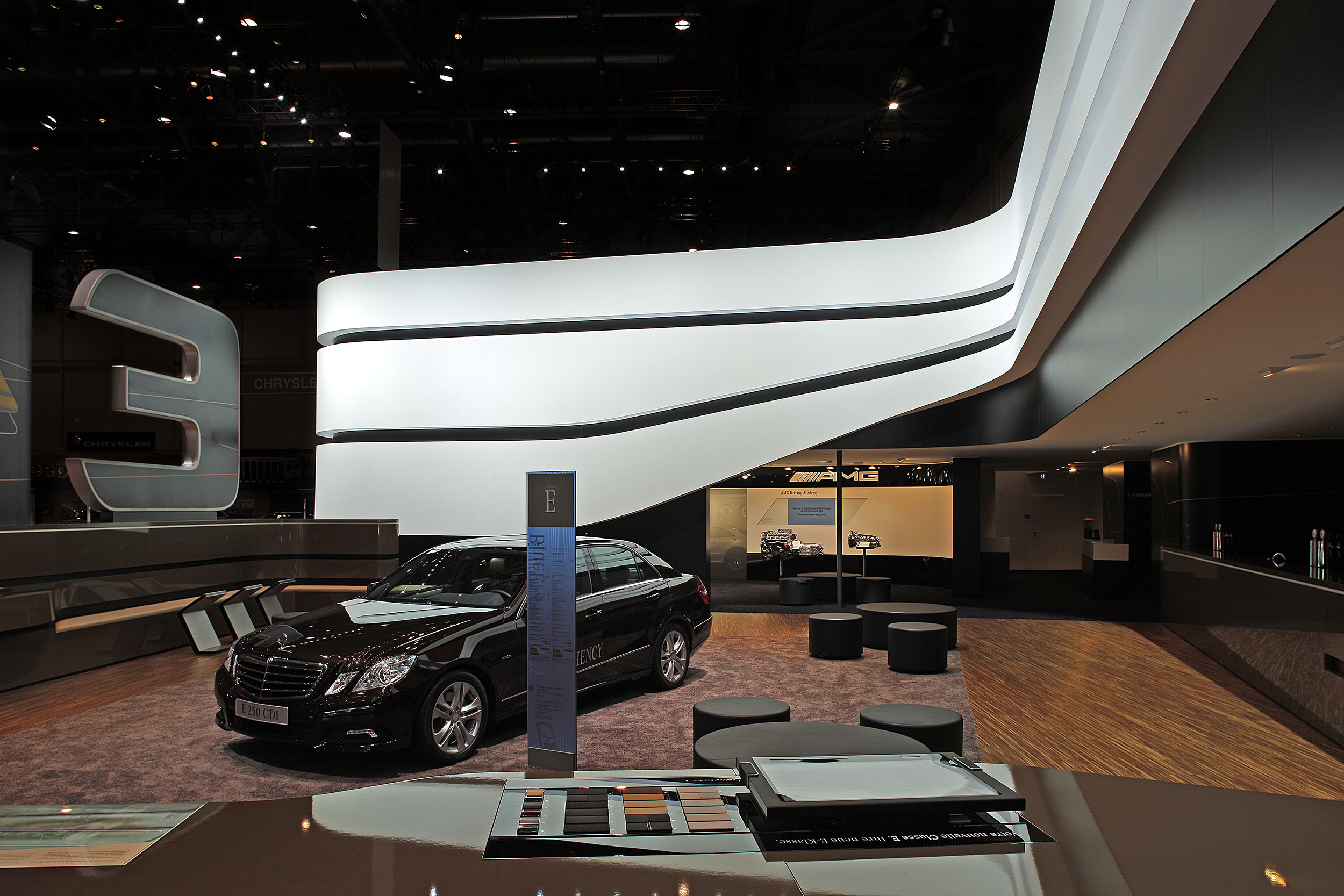 2006 beauftragte Mercedes Benz anlässlich des Genfer Automobilsalons ein Messe- und Verkaufstool für die damals neu erscheinende C-Klasse. 2009 sollte eine überarbeitete Version dieses Tools für den anstehenden Automobilsalon in Genf und damit der Publikumspremiere der E-Klasse realisiert werden. Das Tool sollte erneut die Möglichkeit bieten, die E-Klasse sowohl von außen als auch von innen in einer 360° Rundumansicht zu zeigen und damit so erlebbar wie möglich zu gestalten.