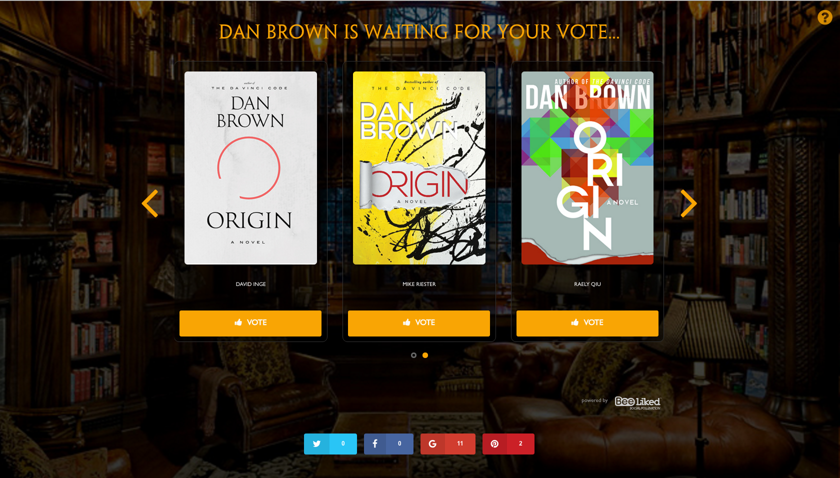 Für das neue Buch des ‘Da-Vinci-Code’ Autor Dan Brown sollte in der Zeit von Mai bis Juni 2017 ein Cover-Voting und gleichzeitigem Gewinnspiel veranstaltet werden. Der Teilnehmer dieses Gewinnspiels konnte eines von sechs Buchcovern auswählen und erhielt dann ein persönliches Video.