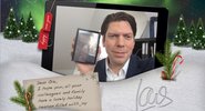 Im finalen Video gab es insgesamt vier Szenen die personalisiert bzw. individualisiert wurden. Zunächst eine Einladungskarte. Auf die im Dreh mit fünf Trackingpunkten versehene weisse Karte wurde zunächst ein Basislayout gelegt. Danach wurden die dynamischen Felder für den Vor- und Nachname sowie die Daten der Einladung, Datum und Uhrzeit eingefügt. Der Clou dieser Szene ist aber die persönliche Ansprache des Users durch eine KI. Die gesamte Introszene wurde von einer synthetischen Stimme gesprochen und damit ist auch der personalisierte Name ein Teil des Textes und wirkt völlig echt. Realisiert wurde dies mit der Sprachsynthese „Polly“ von Amazon. Später im Video begrüßte Dan Brown seinen Gast, während er das Buch des Teilnehmers signierte. Das Buchcover inkl. Rücken waren die kompliziertesten Teile in diesem Film. Es mussten verschiedene Masken und Tracker genutzt werden um den Rücken des Buches und das Cover selbst sauber auf das gedrehte Material zu mappen.