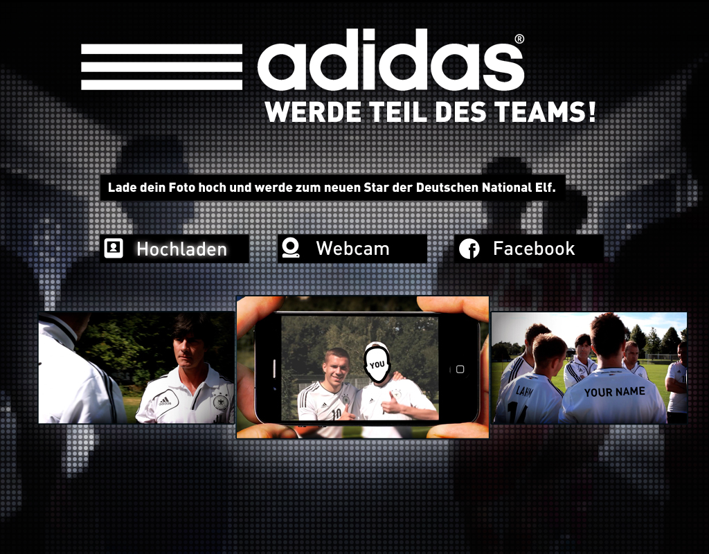 Um die sehr aufwending gefilmte Hauptkampagne von adidas soll ein viraler Spot erstellt werden, der es dem User ermöglicht, Teil der deutschen Nationalmannschaft zu werden.