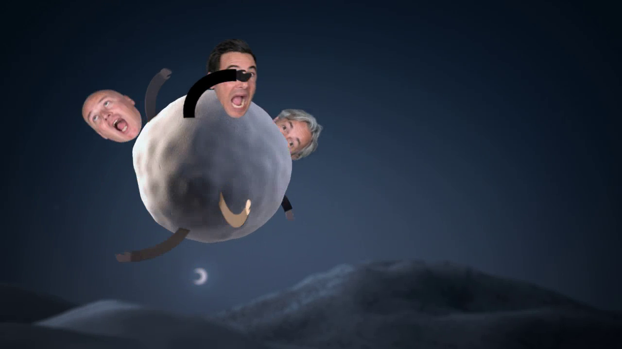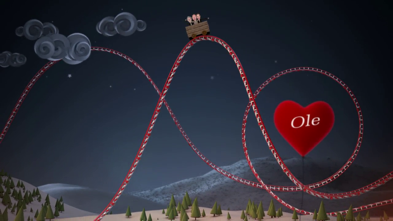 Währenddessen begegnet man unterschiedlichsten Protagonisten am Wegesrand - es sind Stars und Sternchen der Sender. Von der rollenden Kugel gelangen die Geschäftsführer in den Wagon einer Achterbahn. Diese kommt zum stehen und es entsteht eine große Parade, welche an einem Weihnachtsbaum endet.