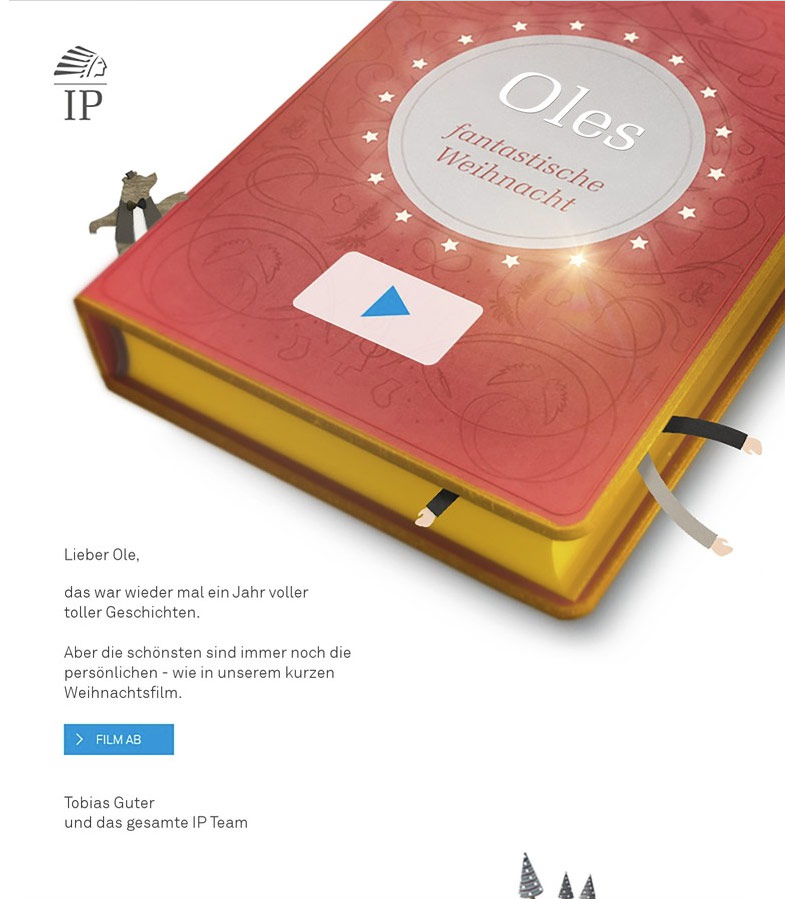 Im diesjährigen Weihnachtsgruß nimmt IP Deutschland seine Kunden mit, auf eine Reise durch eine überraschende, fantastische Weihnachtswelt.