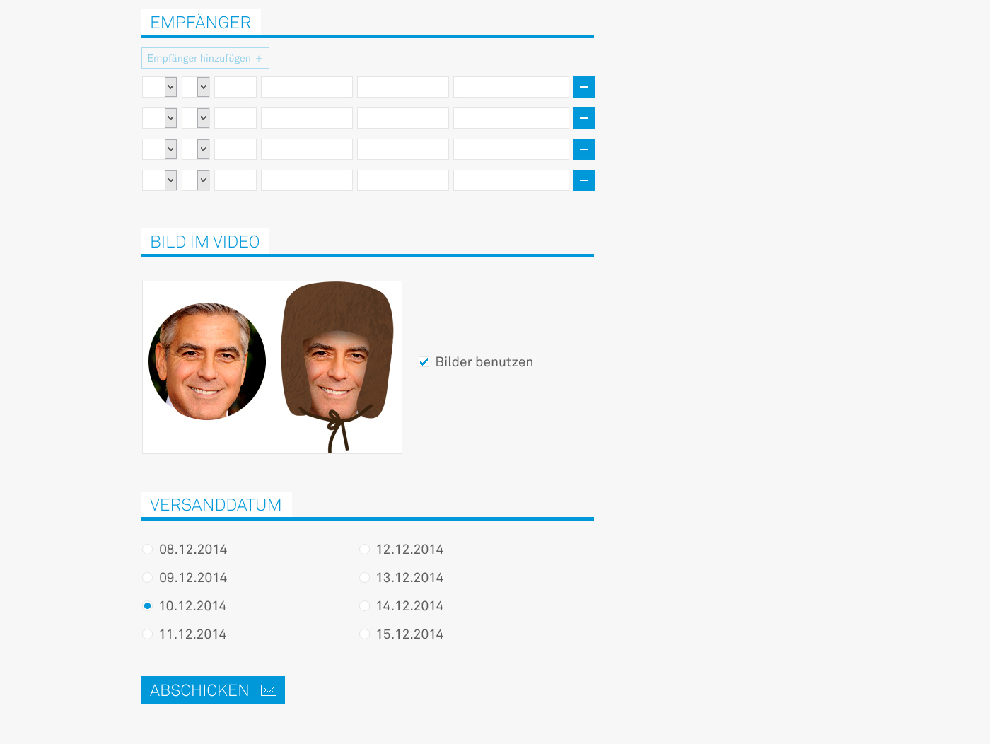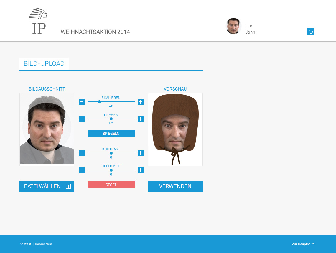 Außerdem hat der Versender die Möglichkeit ein Bild von sich hochzuladen und es in Größe, Farbe und Kontrast für den Film anzupassen.