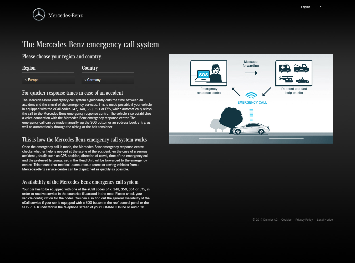 Eines unserer Mercedes-Benz Projekte an dem wir schon längere Zeit arbeiten und wir sehr stolz sind, bekam im Jahre 2014 aus CI Gründen eine Grunderneuerung, sprich: Alles musste neu. Wer mehr über das eCall System erfahren will, kann hier den Artikel darüber lesen. Das Projekt wächst immer weiter und es kommen nicht nur neue Länder sondern auch ganze Regionen dazu. Ursprünglich mit den Ländern in und um Europa angefangen, kommen inzwischen diverse eCall unterstützte Länder aus den Regionen Nordamerika, über Nah- und Fernost, bis zum Südpazifik hinzu.