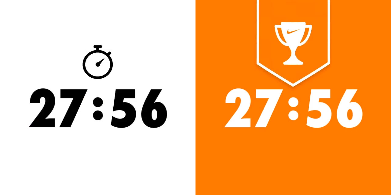 Es gab die Parameter: Name, Bild, Zeit, Platzierung, bisherige Bestzeit unterboten. Hat der Läufer beispielsweise seinen Rekord gebrochen, wurde dies innerhalb des Videos mit den brennenden Füßen des Läufers und einem Pokal dargestellt.