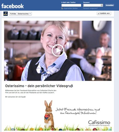 Der Film, in den die personalisierte Grußbotschaft integriert wird, zeigt einen typischen Cafissimo-Moment in einer Tchibo-Filiale. Eine sympathische Mitarbeiterin begrüßt den User mit den Worten „Willkommen bei Tchibo. Ich habe einen ganz persönlichen Cafissimo-Gruß für Sie.“