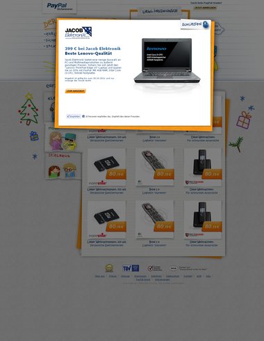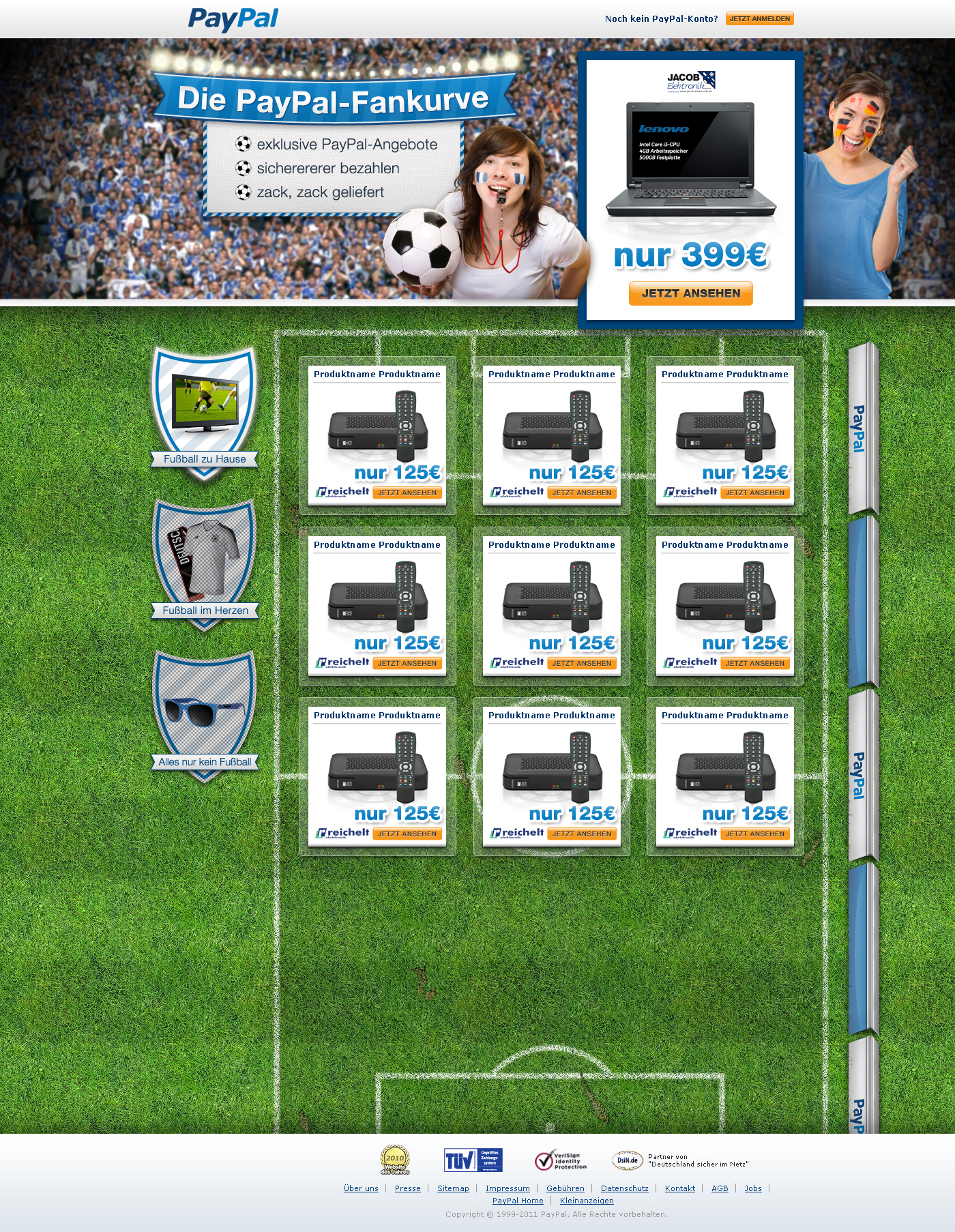 DDD entwickelt eine Landingpage, die speziell auf die Sicherheitsvorgaben von PayPal zugeschnitten ist, da sie innerhalb der PayPal-Serverlandschaft eingesetzt wird. Als Datenbasis wird eine bestehende Schnittstelle für Produktdaten (PayPal) verwendet und die so gewonnen Informationen effizient aufbereitet, damit auch bei erhöhten Besucherzahlen eine schnelle Auslieferung der Landingpage gewährleistet ist.