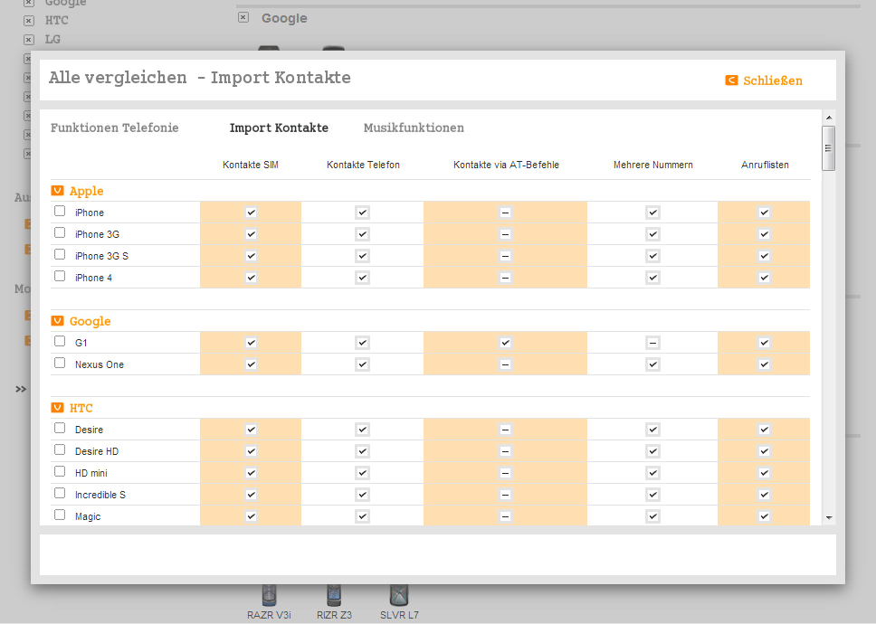 Produktion eines Tools, das die Kompatibilität zwischen dem smart Audiosystem und diversen Handys sowie deren Funktionen anzeigt.