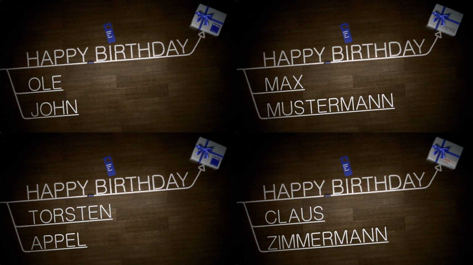 Am Ende des Films bekommt der User aus den umgefallenen Karten einen Glückwunsch zum Geburtstag angezeigt, der seinen Namen ergibt.