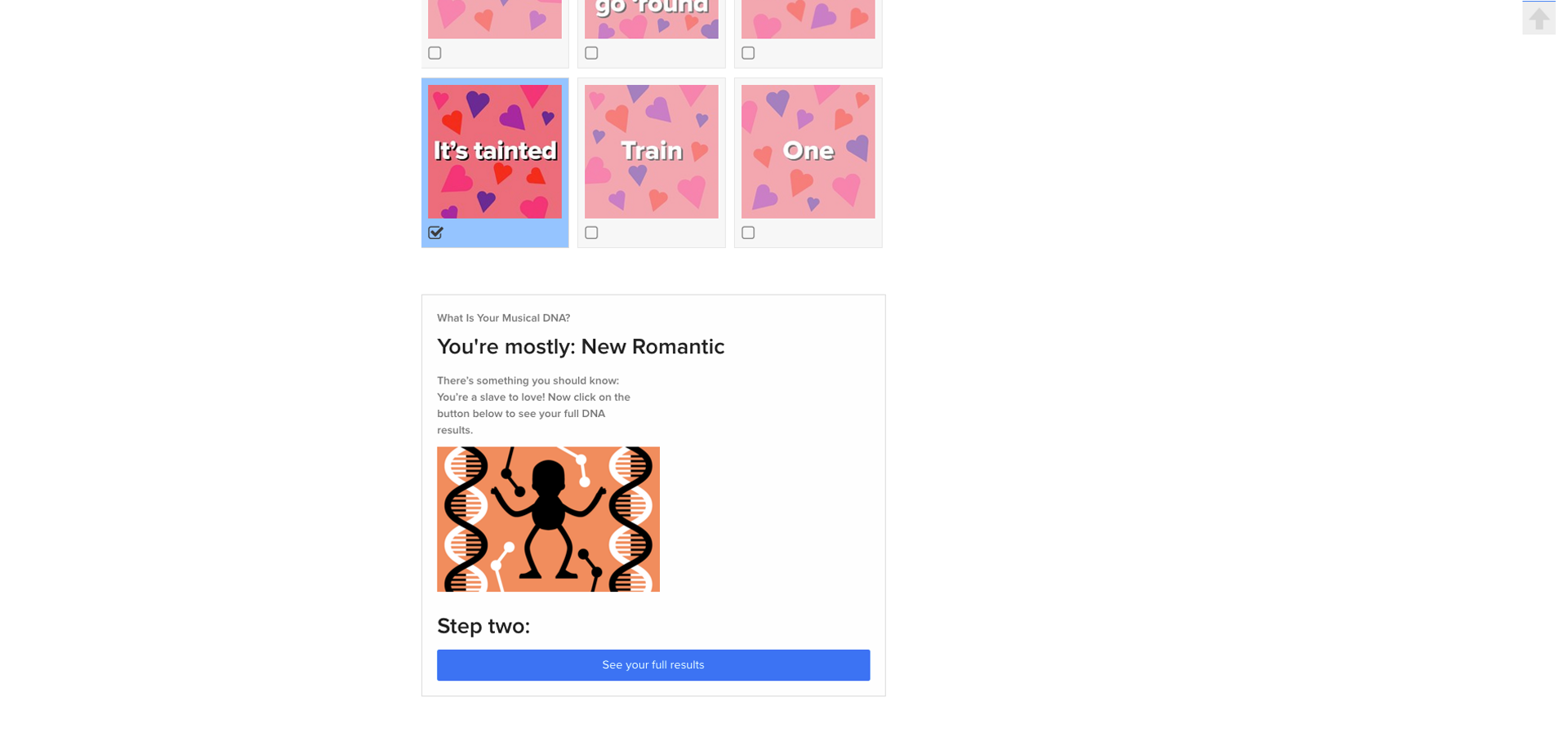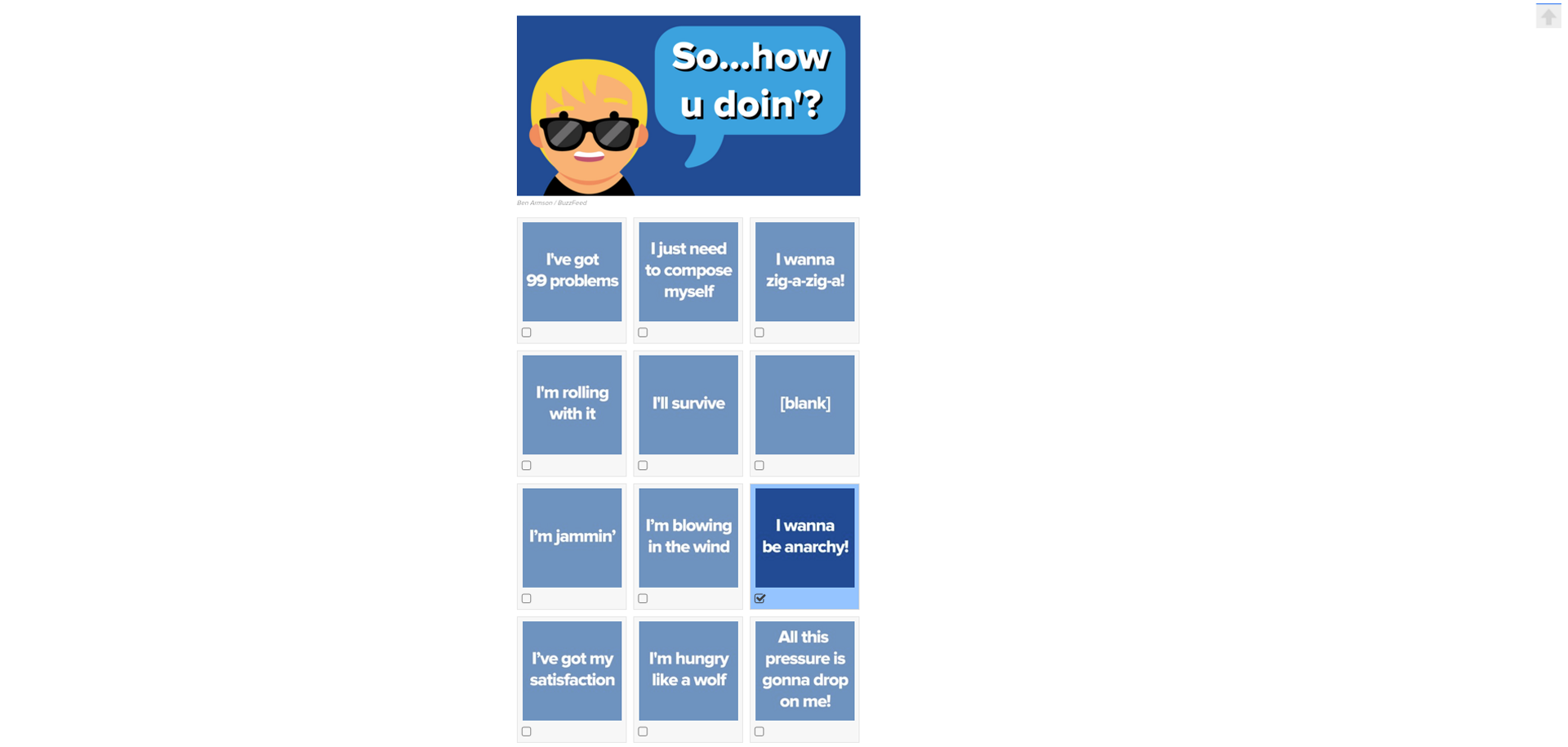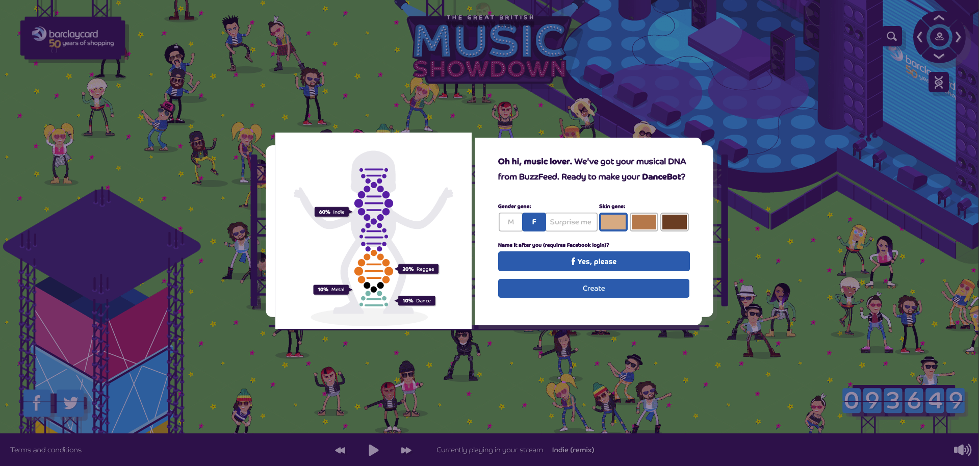 Each element of the figure - head, body, arms, legs, legs, dance, background and the skin tone of the figures - was produced independently of each other and made available to us. This resulted in around one million individual parts. The evaluation of the BuzzFeed quiz on the landing page then resulted in the matrix for the composition of the individual parts of the completely unique dance figure.