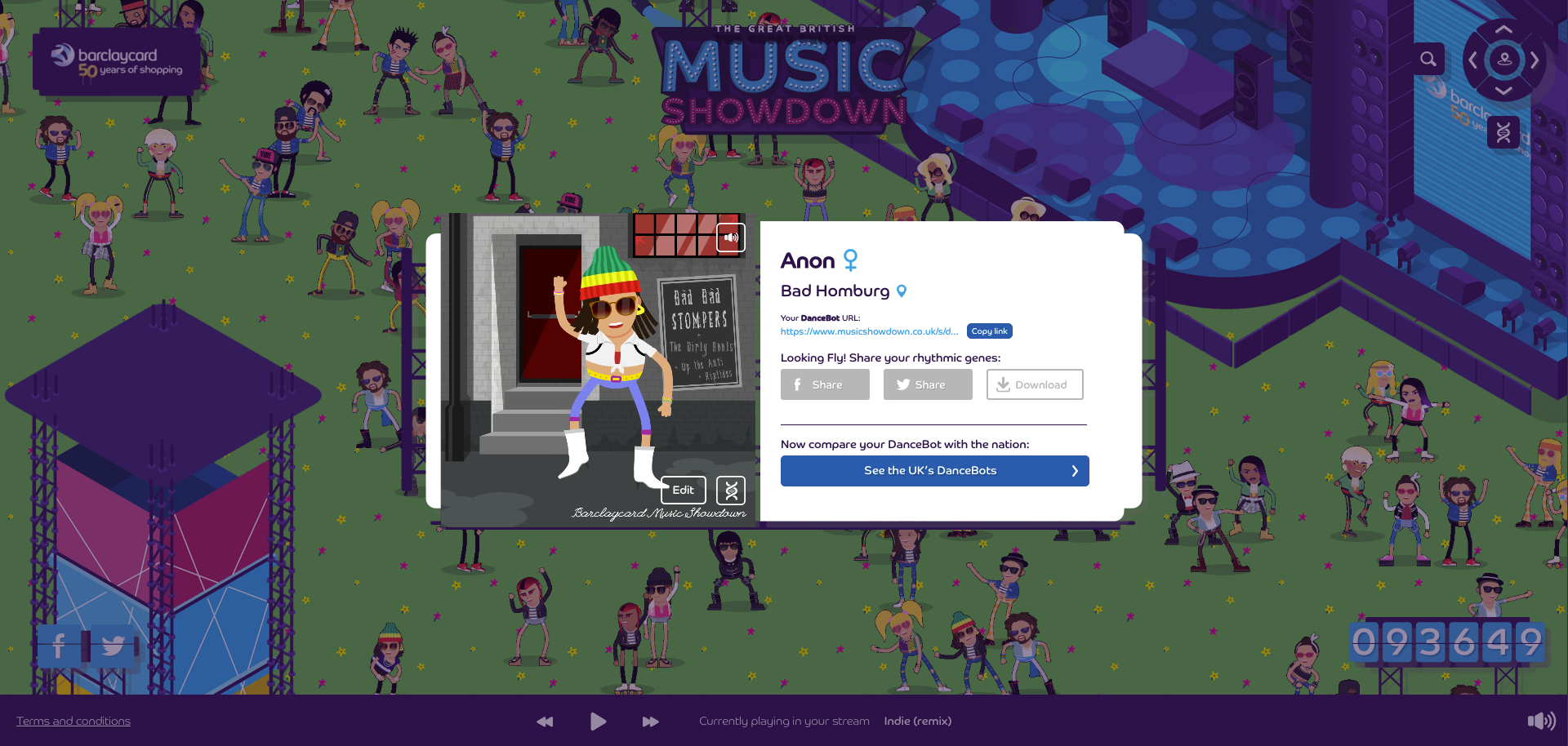 The video of the character was calculated in a format of 1.080x1.080px as mp4 and displayed to the user. At the same time the DanceBot was also calculated as a GIF, which could be seen on the homepage of musicshowdown.co.uk where you can see all DanceBots of other users.