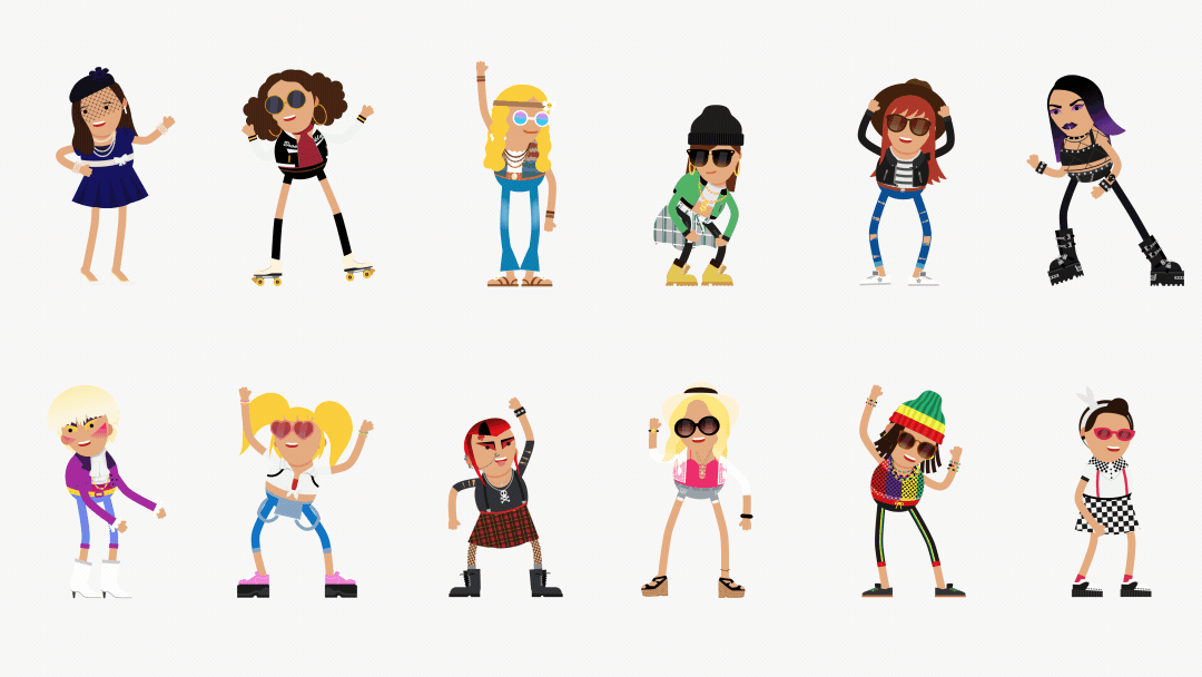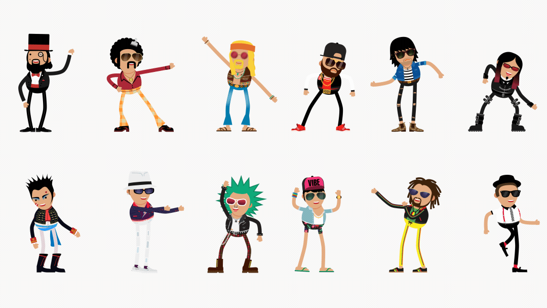 Bliink created and animated 24 dancing characters with their own movements on behalf of AQKA UK's order. In addition, 12 different backgrounds were developed in front of which the figures should move. In addition to that, there were also 12 different musical genres to which the figures moved accordingly. This variety of figures should be made available to the users for individualization via a quiz later on.
