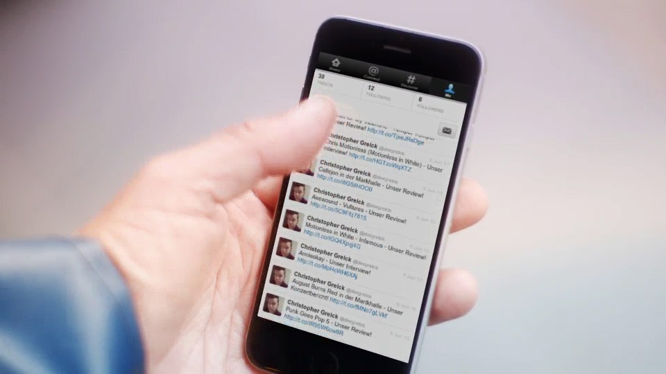 In the different scenes, of the one minute and forty-second long clip, different individualizations are to be seen. On a pinboard and on a cup the Twitter user picture is used. On a lifeline the user name is written and in a further sequence of the video the actor scrolls through a part of an integrated Twitter feed of the user.